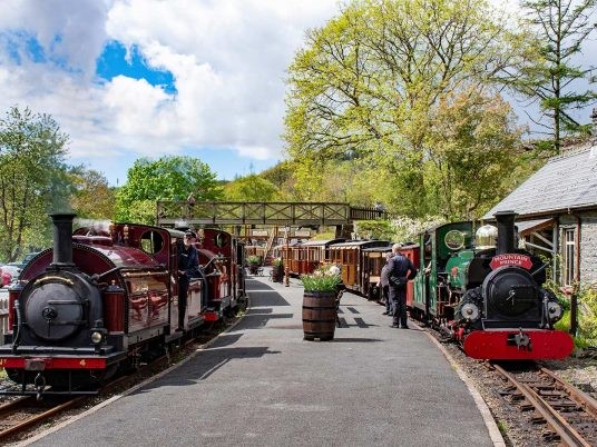The Ffestiniog Railway is the world’s oldest narrow gauge railway with almost 200 years of history, taking you on a journey to the slate-quarrying town of Blaenau Ffestiniog.  Historic trains climb over 700 feet from sea level into the mountains through tranquil pastures and magnificent forests, past lakes and waterfalls, round tight bends (even a complete spiral) clinging to the side of the mountain or tunnelling through it.